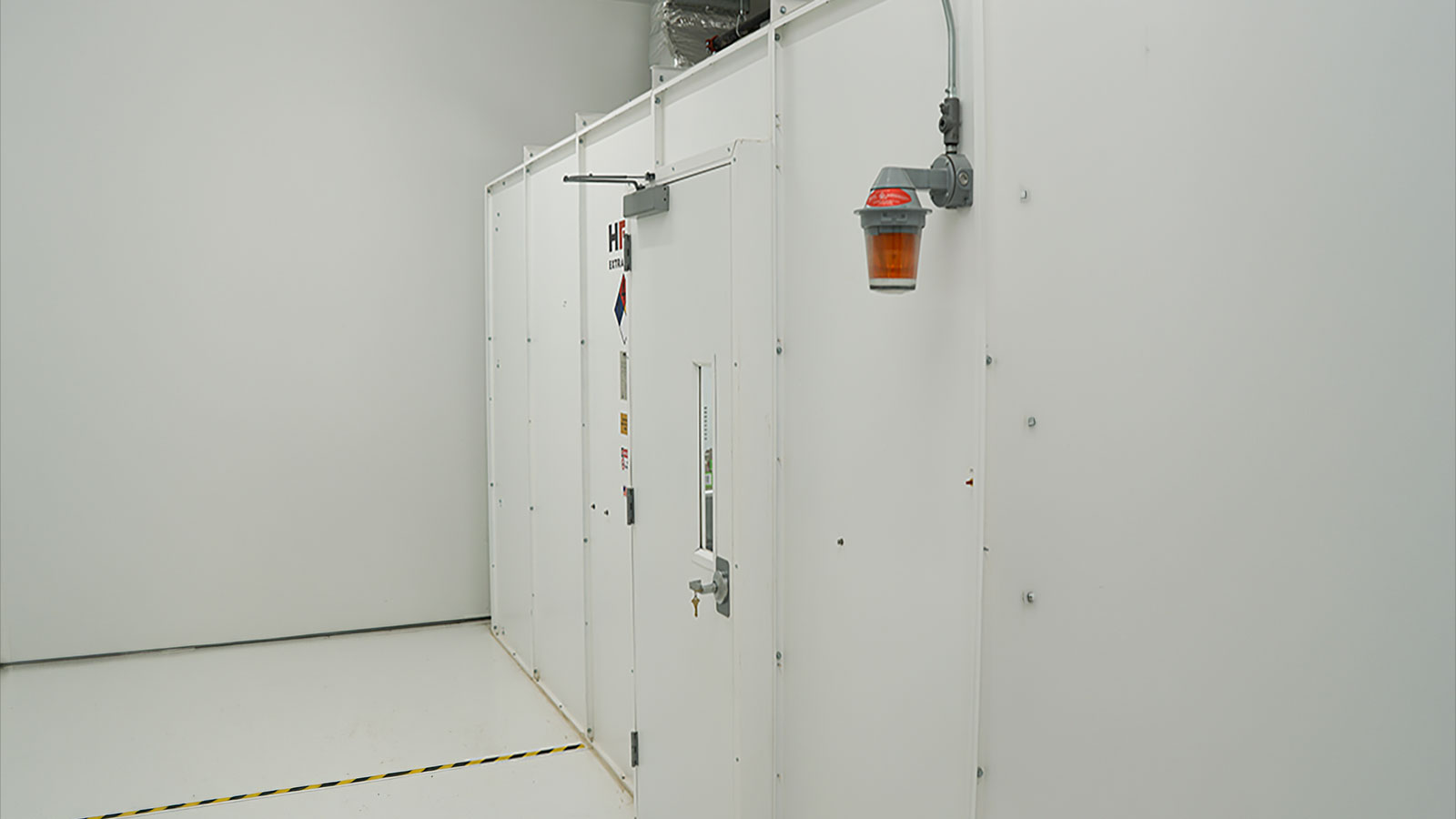- Blast-rated enclosure. Many AHJs require blast-resistant construction — commonly steel panel assemblies rated to withstand 5–7 PSI overpressure — either as a dedicated room inside a larger building or as a prefabricated modular lab.